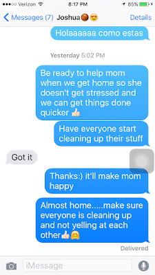 I check Rebekah's texts often. I had to laugh when I saw this one...between her and joshua...she's such a sweet daughter!