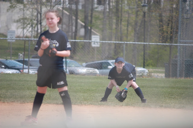 rebekah was nervous before her first game. but she did great! it's her first season playing softball - which is kind of crazy around here - most of her teammates have been playing for YEARS. she is a brave girl! we are so proud of her!